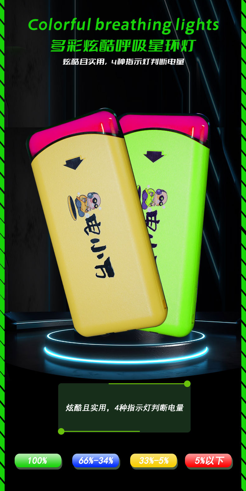 8、多彩炫酷呼吸星环灯(炫酷且实用,4种指示灯判断电量)